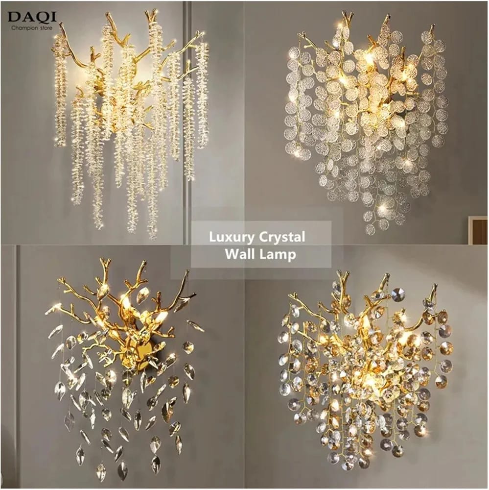 Applique murale en cristal de luxe, abat-jour en gouttes de cristal, lumière dĂ©corative d’intĂ©rieur moderne pour couloir et chambre Ă  coucher