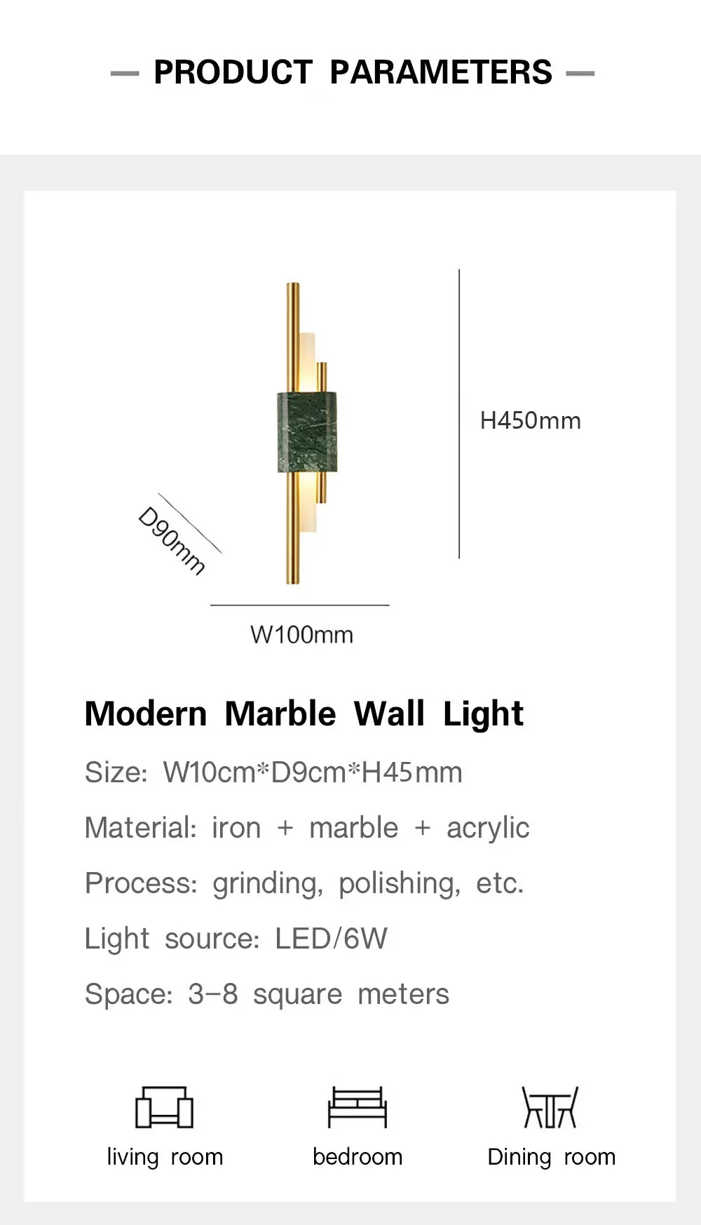 Applique murale LED en marbre moderne, éclairage intérieur, salle de bains, chambre à coucher, applique décorative