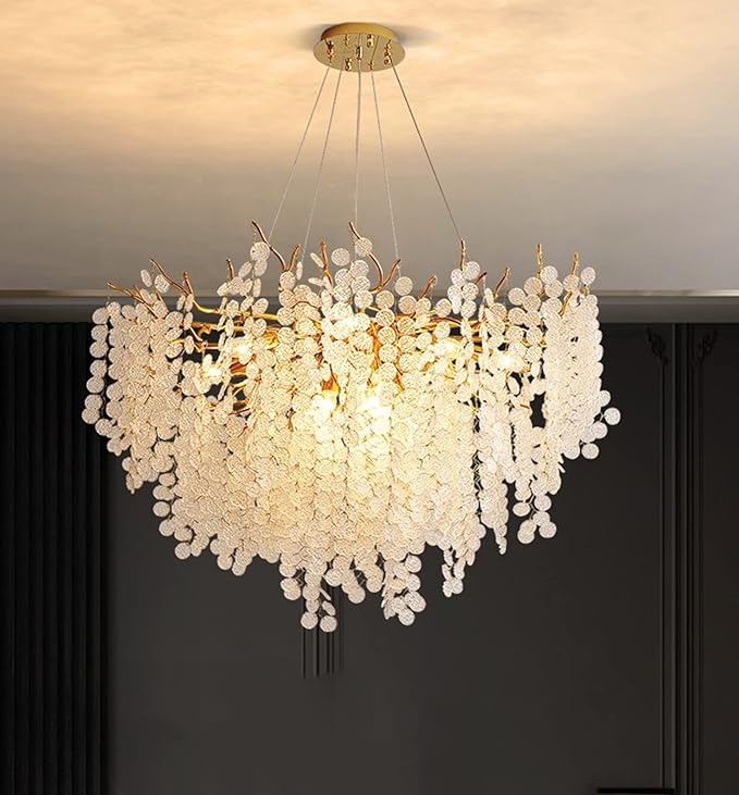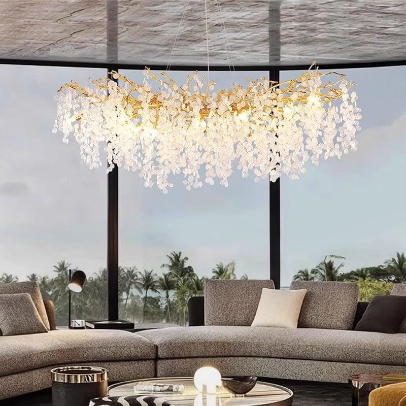 Lustre en cristal de luxe – Design de branche moderne pour salle à manger et chambre à coucher de villa, éclairage rond haut de gamme pour salon et salon