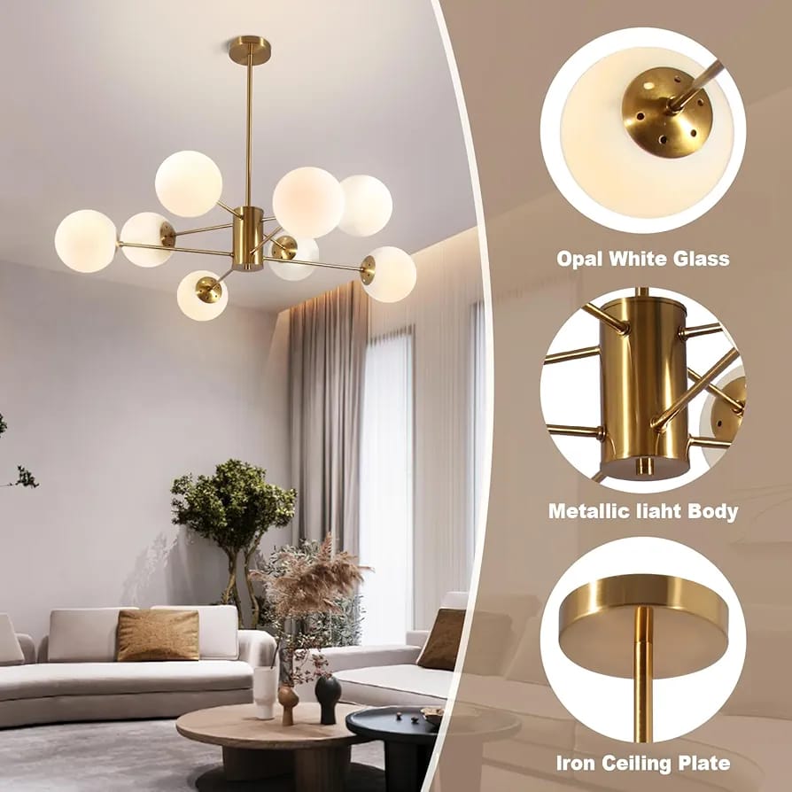 Lustre LED en verre de salon luxueux moderne-salon à manger de style nordique, chambre à coucher, lustre d’éclairage intérieur de cuisine