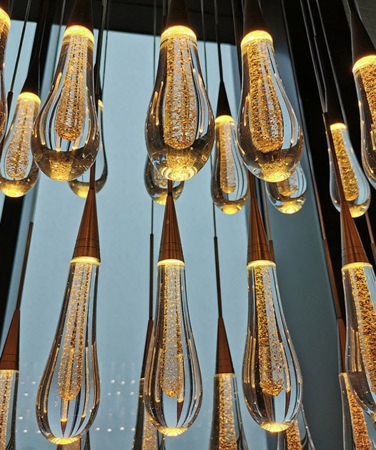 Lustre d’escalier Led moderne salon Restaurant éclairage intérieur cristal goutte de pluie Suspension Duplex grenier lampes suspendues