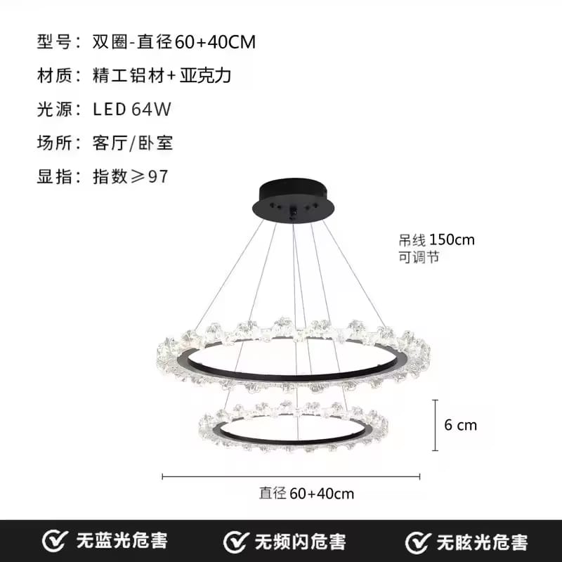 Suspension LED circulaire en cristal avec anneau doré, lumière à intensité variable, salon, salle à manger, chambre à coucher, designer, luxe
